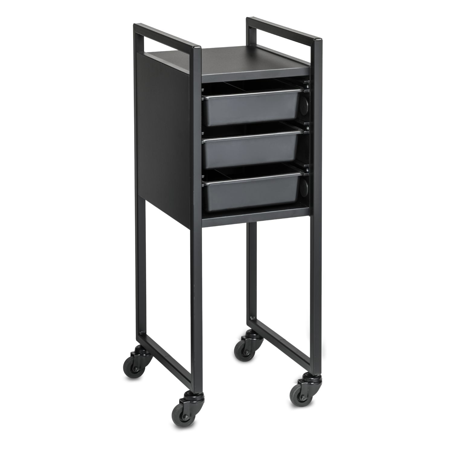 Retro Work verbindet Funktionalität mit Design. Aus pulverbeschichtetem Stahl in schwarz und Korpus in hochglanzweiß. Inklusive drei fächer.