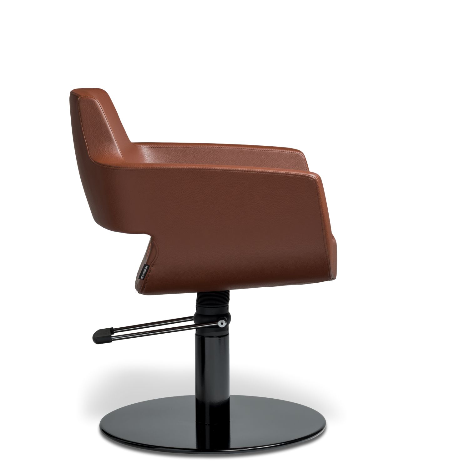 Der Schalensitz der siebziger Jahre im zeitgenössischen Look. Leicht von Schnitthaaren zu reinigen durch die offene Rückenlehne. Erhältlich mit verschiedenen Untergestellen. Sitzbezüge nach Wahl aus der Welonda Farbkollektion.